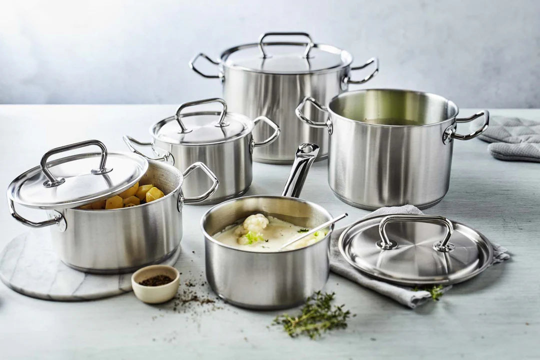 Demeyere onderscheidt zich door haar technische innovatie: een naadloze meerlagenconstructie, Silvinox®-afwerking en perfect sluitende deksels. Het resultaat: maximale prestaties, lange levensduur en een glad oppervlak dat hygiënisch blijft.