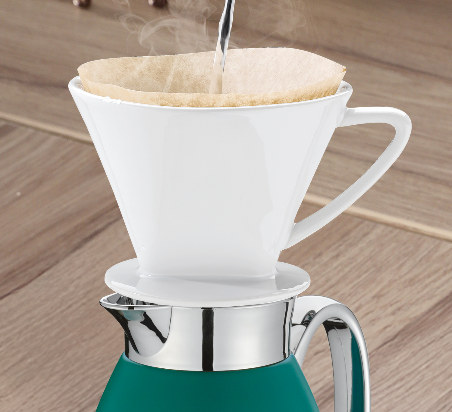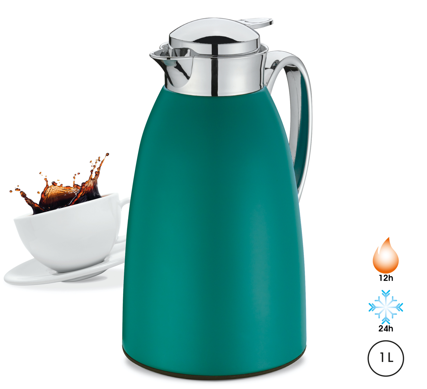 Eénhandige bediening dankzij schenkknop en draaidopPerfect formaat (1 liter)