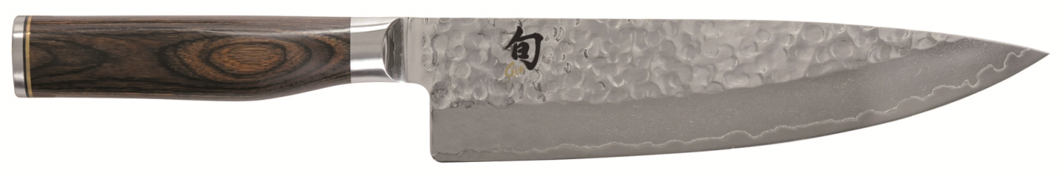 De Shun Premier Tim Mälzer-serie is speciaal afgestemd op de behoeften en eisen van professionele koks. Met deze premiumserie combineren de hoogwaardige materiaaleigenschappen van de bekende Shun Classic-serie met een volledig nieuwe en indrukwekkende algehele uitstraling. Het lemmet is onderverdeeld in drie verschillende texturen: Van de rug van het lemmet tot het midden ervan is een hamerslagoppervlak, bekend als Tsuchime, aangebracht. Deze textuur wordt gevolgd door de fijn gematteerde damastnerf, kenmerkend voor Shun. Het lemmet wordt afgerond met zijn hoogglanzend gepolijste precisiesnede. Het zorgvuldig bewerkte lemmet is gecombineerd met een handgreep van middelbruin gemasseerd pakkahout. De bijzonder harde en duurzame kernstaal van het lemmet zorgt voor buitengewone scherpte en langdurige snijprestaties.