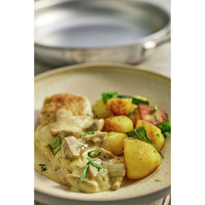 De pan is opgebouwd uit 7 lagen voor een snelle en gelijkmatige warmteverdeling. Dat betekent bakken zonder hot spots en met maximale controle. Kook je op inductie? Dan profiteer je van de TriplInduc®-technologie, die tot 30% energie bespaart en zorgt voor een stabiele temperatuur – ook op een lage stand.