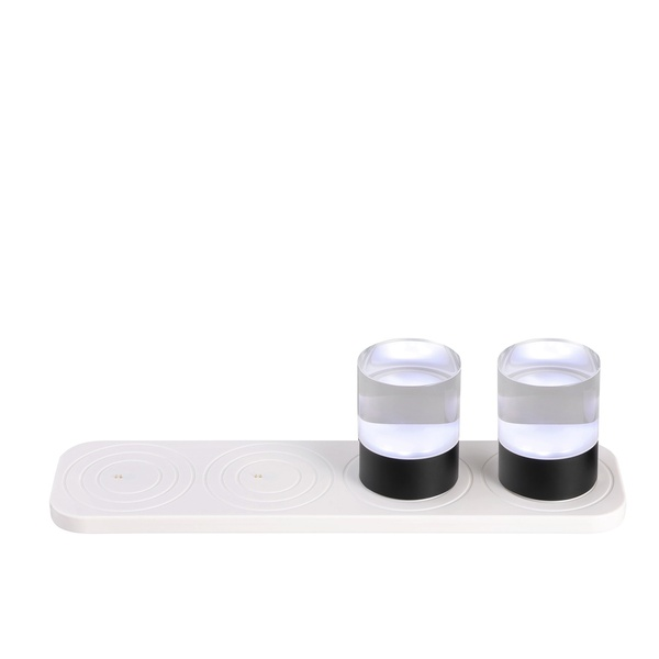 Design: Een unieke acrylstaaf met een zwarte, poedercoated aluminium voet.