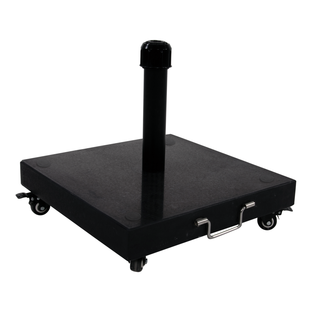 De Parasolvoet op 4 wielen, 50kg graniet zwart zorgt voor een fijne schaduwplek op warme dagen. Het stevige doek beschermt je tegen de zon, en het solide frame houdt de parasol goed op zijn plek. Makkelijk in gebruik en een mooie aanvulling op je tuin of terras.