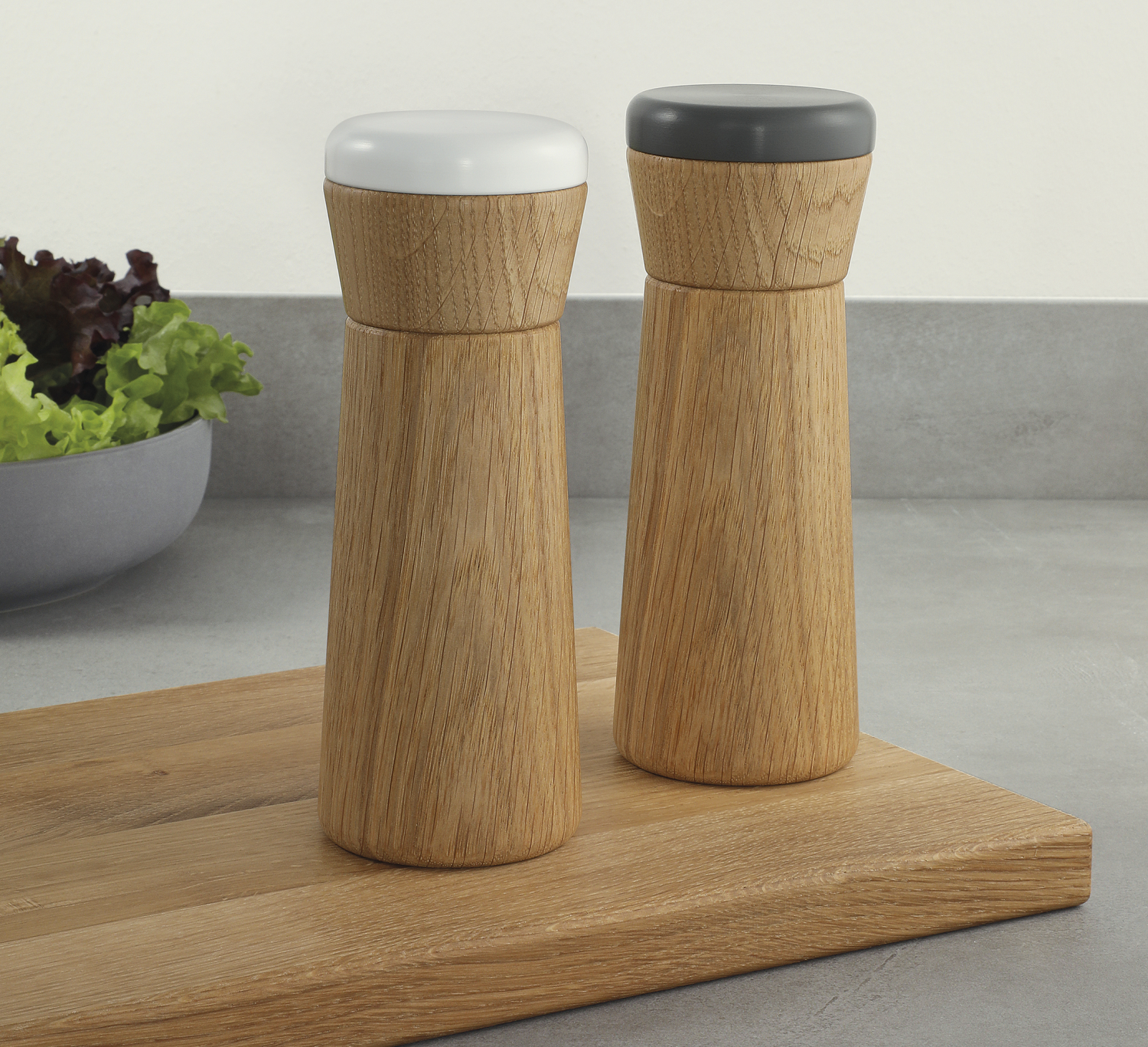 De LÜNNE pepermolen van ZASSENHAUS is een verfijnde combinatie van natuurlijke materialen en moderne precisietechniek. Met zijn warme houtstructuur en witte KRION® accent straalt deze molen rust en luxe uit. Een must-have voor iedere keuken of eettafel.