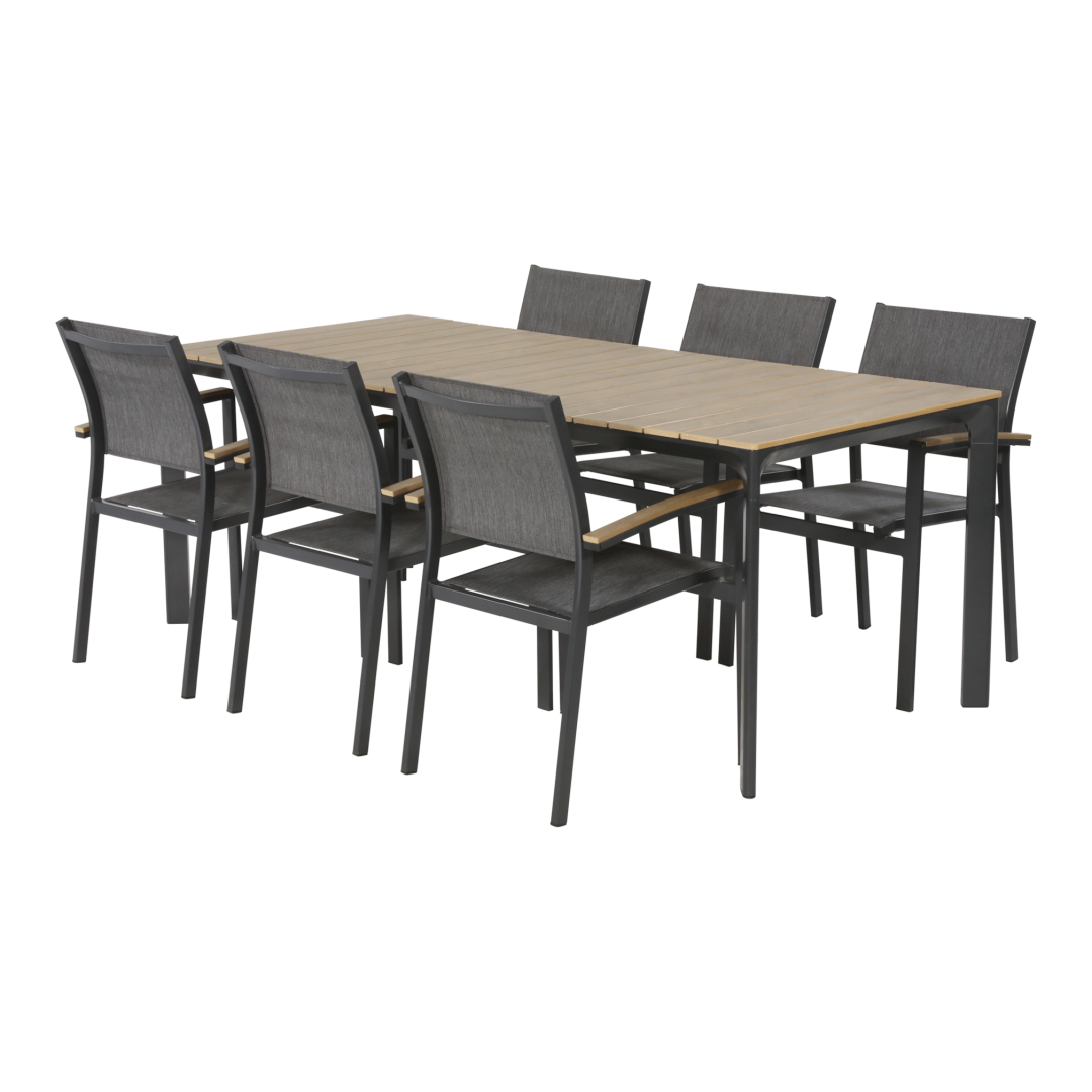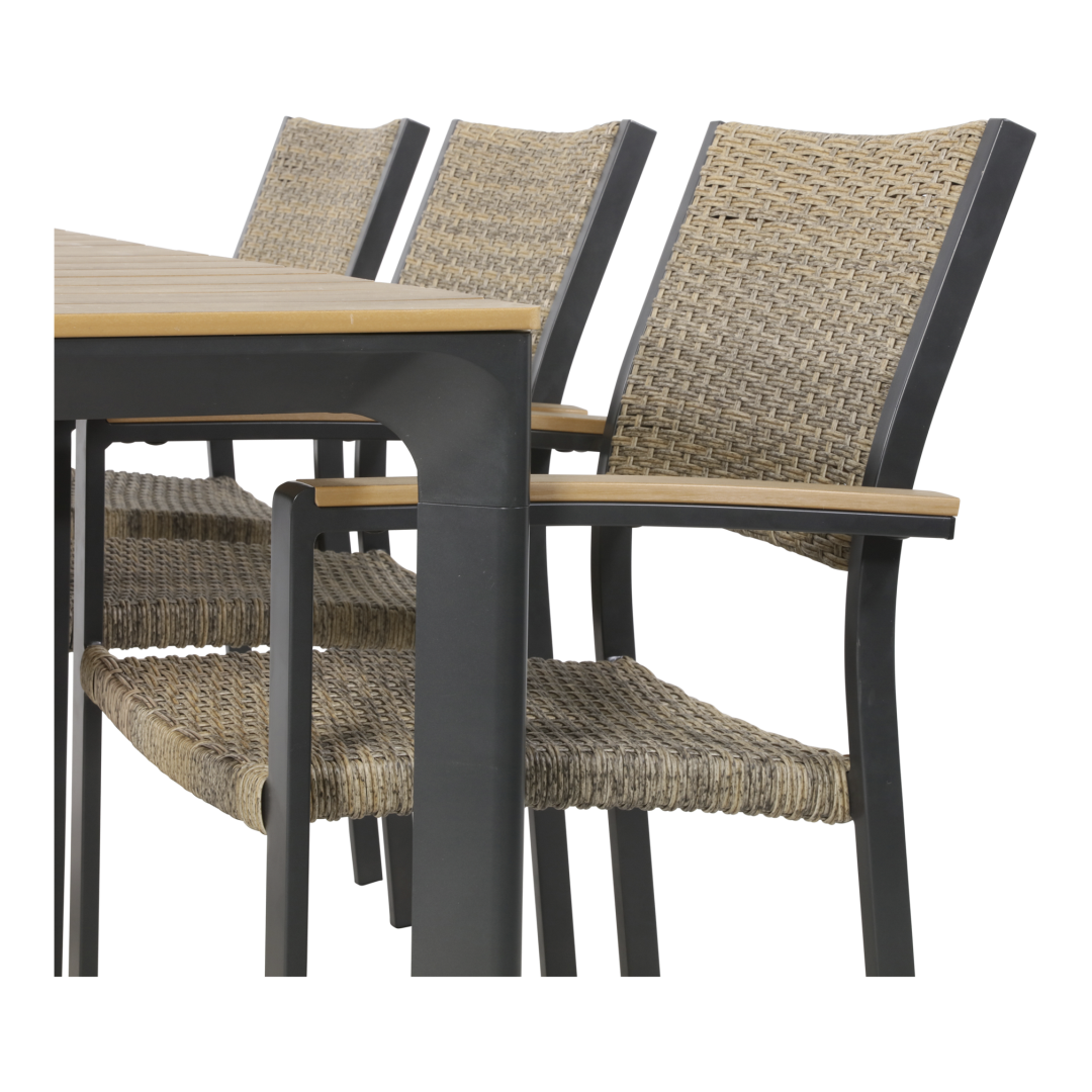 De Tafel Arezzo 200x90cm is een ruime en stevige tafel, perfect voor gezellige etentjes en borrels in de tuin. Het grote tafelblad biedt genoeg plek voor eten, drinken en decoratie. Dankzij de sterke materialen blijft deze tafel jarenlang mooi, zelfs als hij buiten staat.