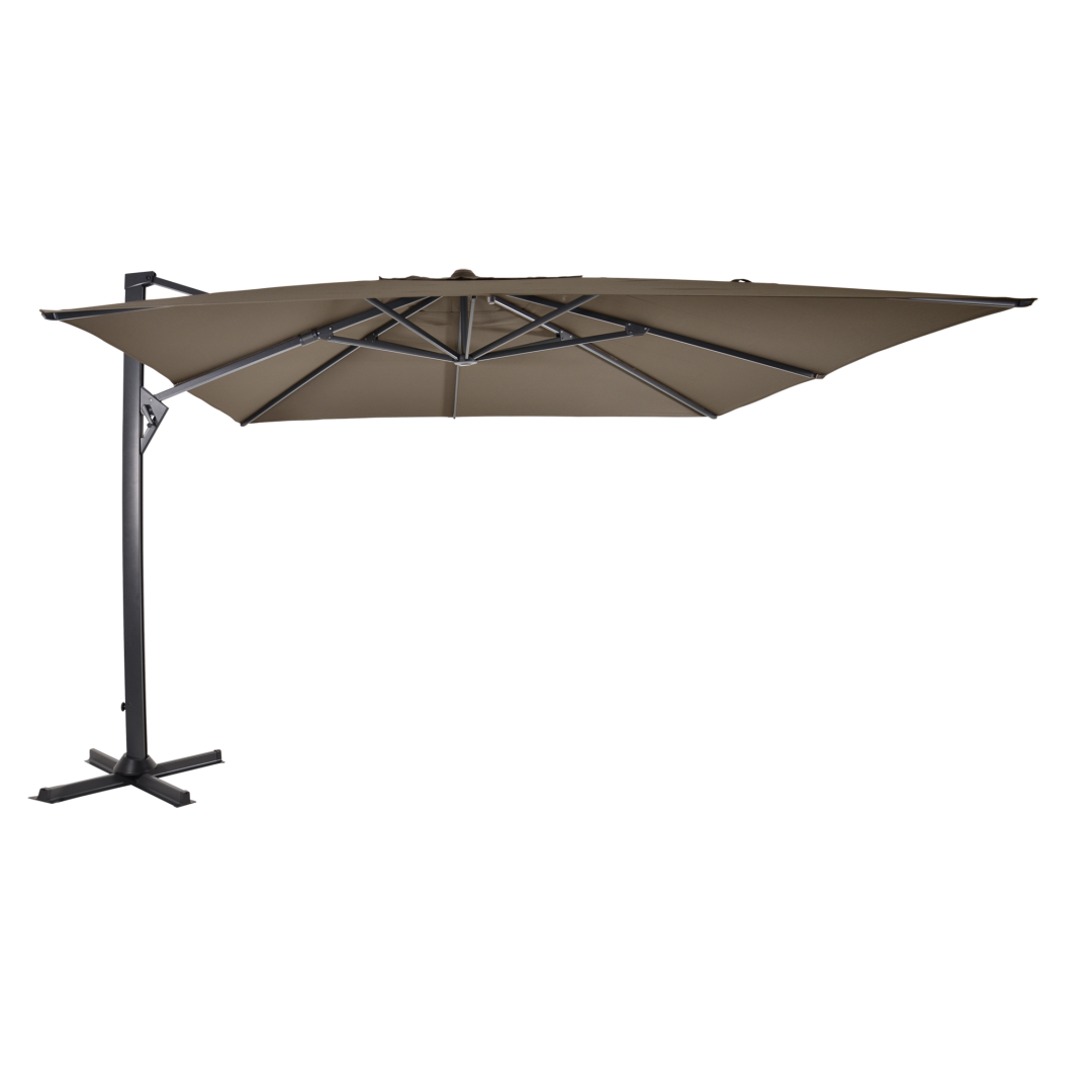 De Zweefparasol Taurus taupe 3x4mtr zorgt voor een fijne schaduwplek op warme dagen. Het stevige doek beschermt je tegen de zon, en het solide frame houdt de parasol goed op zijn plek. Makkelijk in gebruik en een mooie aanvulling op je tuin of terras.